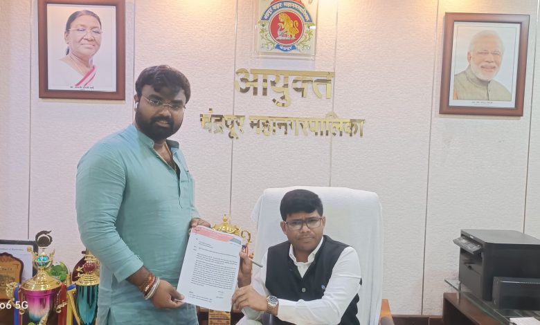 चंद्रपूर शहरातील पाणीटंचाई व स्वच्छता प्रश्नावर महानगरपालिका आयुक्तांना निवेदन
