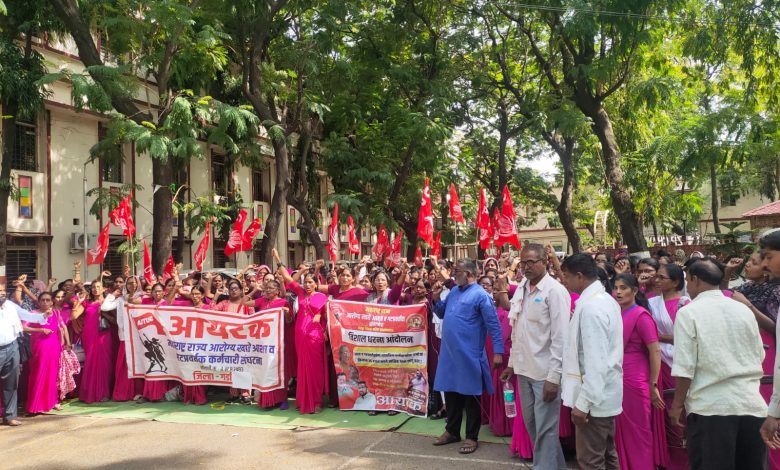 केंद्र सरकार कडून आशा व गट प्रवर्तक कर्मचारी यांना मिळणारा मानधन ऑक्टोबर २०२५ पासून थकित असून तो तातडीने देण्यात यावा. आशा व गट प्रवर्तक यांना शासकीय कर्मचारी दर्जा द्या तसेच गट प्रवर्तक यांना कंत्राटी कर्मचारी म्हणून मान्यता देण्याचा प्रस्ताव त्वरित मंजूर करावा, सेवानिवृत्ती वयोमर्यादा ६० वरून ६५ करण्यात यावी यासह विविध मागण्यासाठी आयटक संलग्न महाराष्ट्र राज्य आरोग्य खाते आशा व गट प्रवर्तक कर्मचारी संघटनेचे राज्य उपाध्यक्ष कॉ. विनोद झोडगे पाटील यांच्या नेतृत्वात ६ महिन्याचा मानधन थकला असल्याने आम्ही जगायचे कसे असा संतप्त सवाल करत जिल्हा परिषद कार्यालय चंद्रपूर वर धडक देत सरकार विरोधात तीव्र घोषणाबाजी करून मुख्यकार्यकारी अधिकारी व जिल्हा आरोग्य अधिकारी यांच्या माध्यमातून केंद्र सरकार व राज्य सरकार कडे निवेदन देण्यात आले. थकित मानधन त्वरित न मिळाल्यासं दिनांक २१ एप्रिल रोजी मुंबई आझाद मैदानावर राज्यव्यापी तीव्र आंदोलन आणि बेमुदत संप करण्याचा इशारा देण्यात आला आहे.