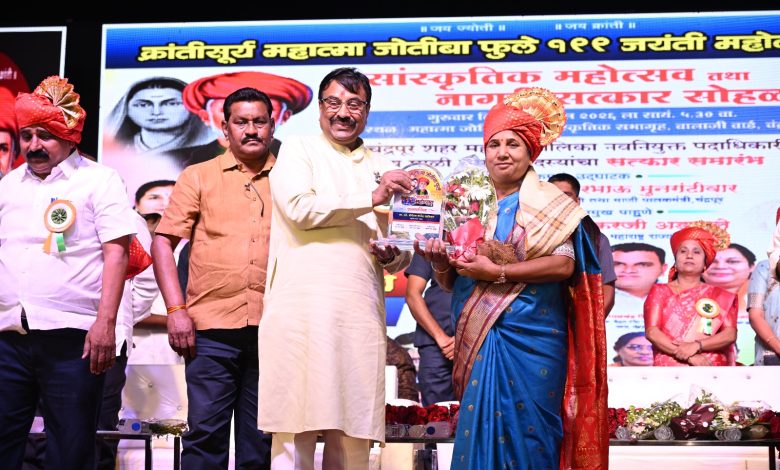बालाजी वॉर्ड येथे क्रांतीसूर्य महात्मा ज्योतिबा फुले जयंतीनिमित्त सांस्कृतिक महोत्सव आणि सत्कार सोहळा आयोजित करण्यात आला. यावेळी महापौर संगीताताई खांडेकर, उपमहापौर प्रशांत दानव, माळी समाजाचे अध्यक्ष राजू बनकर, नंदू नागरकर, विजय राऊत,राहुल पावडे, मनस्वी गीऱ्हे, मंगेश गुलवाडे, विशाल निंबाळकर, भालचंद्र दानव, संजीवनी वासेकर, वैशाली महाडोळे, शीतल गुरनूले आदी मान्यवर उपस्थित होते.