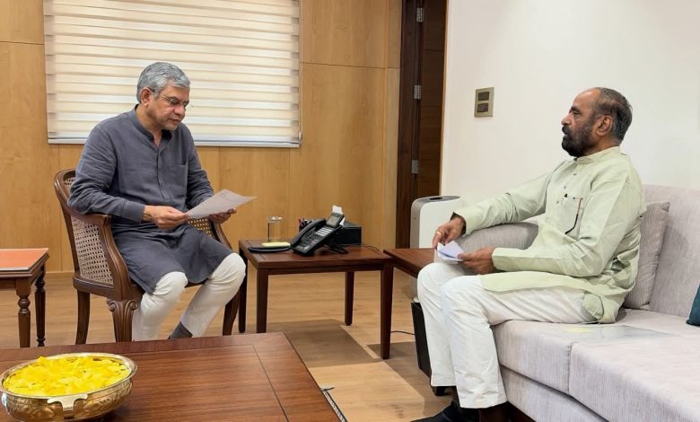 चंद्रपूर : जिल्ह्यातील रेल्वे विषयक समस्यांबाबत पूर्व केंद्रीय गृह राज्यमंत्री हंसराज अहीर यांनी केंद्रीय रेल्वे मंत्री अश्विनी वैष्णव यांची नवी दिल्ली येथे दि. 22 एप्रिल 2026 रोजी भेट घेऊन चर्चा केली, या भेटीप्रसंगी यापूर्वी झालेली बैठक व या भेटीदरम्यान रेल्वे मंत्र्यांनी जिल्ह्यातील रेल्वे सुविधांबाबत दिलेल्या आश्वासनाचे अहीर यांनी मंत्री महोदयांना स्मरण करून दिले.